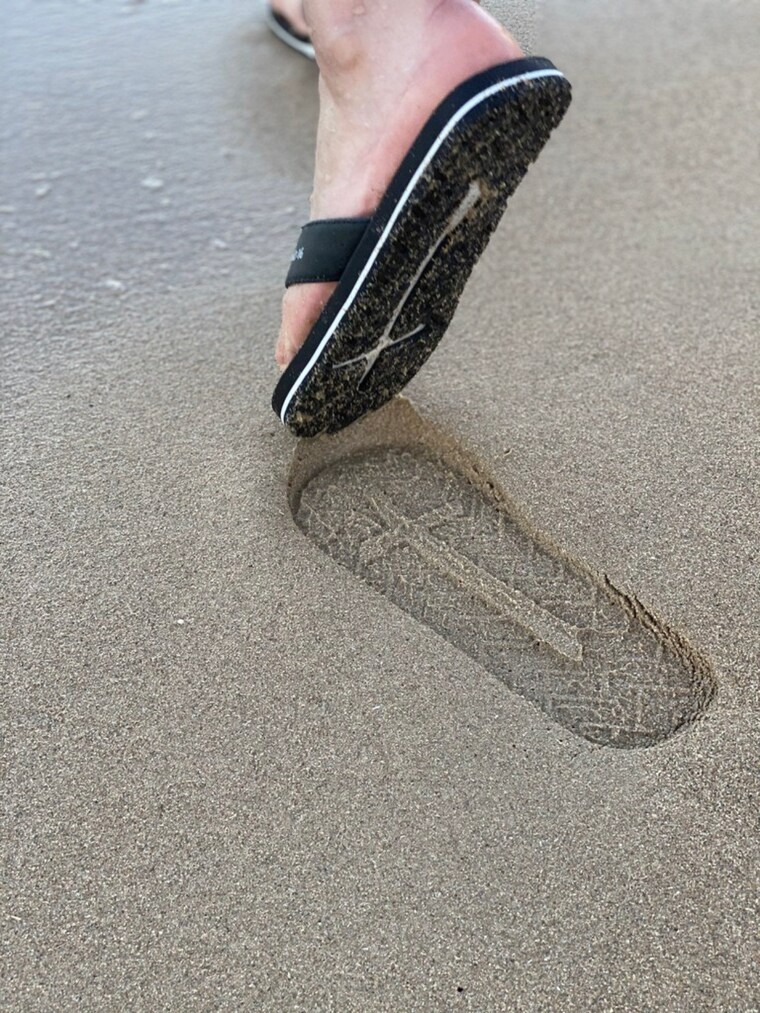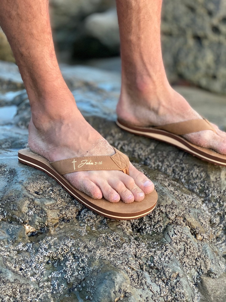 In 2015 I was doing some heavy soul searching. You know the seasons of being on your knees asking God “How can I live your way because my way is failing miserably!” Well, he gave me a vision of a beautiful child walking in the sand and leaving crosses from the bottom of her sandals. It was so peaceful, - not the answer I was looking for. I couldn’t get it out of my mind and began sketching flip flop prototypes all over the house like a madman. I didn’t say anything about the vision for 2 years, I was afraid to step out in my faith. Fast forward another two years and I found myself on my knees again asking God “ A cross bottom sandal, why?” But this time I surrendered and went into development of the first prototype. The rest is history.