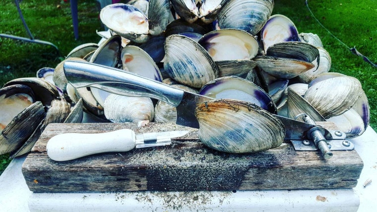 Process & shucking phase.Meat from the Quahogs are used in the culinary part of our business venture Nothing is wasted!!