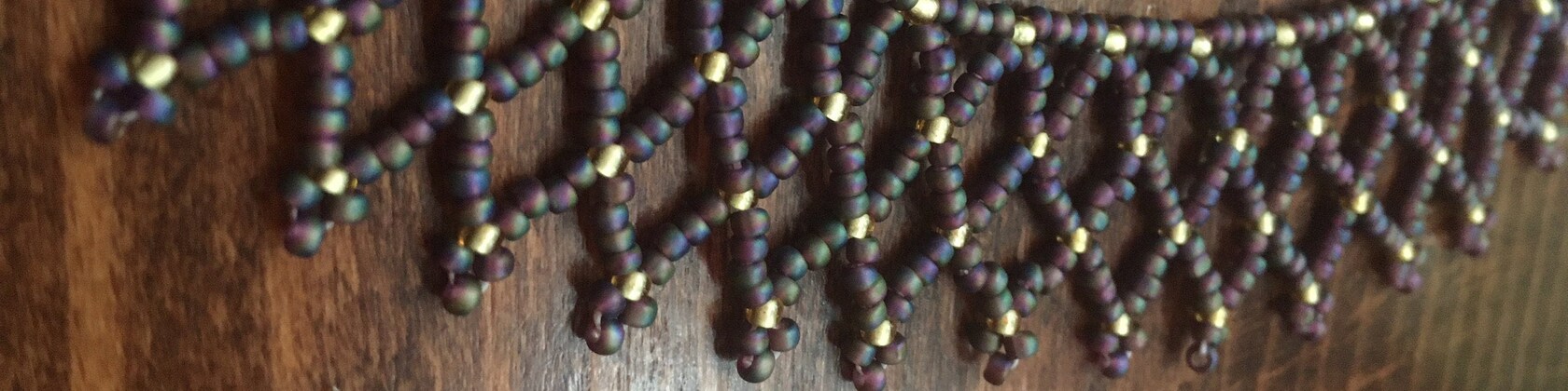 An important note: though many of my patterns originate from a book of traditional 1st Nations beading methods, I do not and will not advertise my pieces as being of indigenous make or theme. Cultural appropriation-- the unacknowledged or inappropriate adoption of the customs, practices, ideas, etc. of one people or society by members of another and typically more dominant people or society-- is unacceptable. I acknowledge that many of my patterns originate with Horace Goodhue's book "Indian Bead-Weaving Patterns," and insist that my buyers respect this as well.