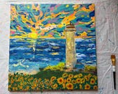 5 out of 5 starsI love love love this piece from Audrey! And knowing she has a personal connection to this lighthouse are makes it even more special! Beautiful, vibrant colors...it faces my bed so I can feel the love when I wake up and before I go to sleep. Thank you Audrey!