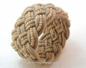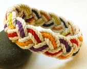 I use cord from a variety of sources, the listings provide details of what is used to make each item. The variation in size and texture of different cord materials always has me wondering how this would come out in a nice knot bracelet. Once when I was in San Francisco we stopped in a kite shop in Chinatown. There was a 1000’ spool of lovely 2 mm white nylon braided cord which I just had to buy and drag around the city all day. This thin bright white cord has made several custom pieces and is one of my favorite materials for making smaller bracelets.