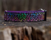 5 out of 5 stars4.5/5 stars. Super cute and colorful leopard print but I was expecting it to be a bit more vibrant than it is. It still shows up nicely on my dog though. My only complaint is the metal buckle. My pup gets a little scared by the noise when it's clicked into place so plastic would have been better.