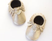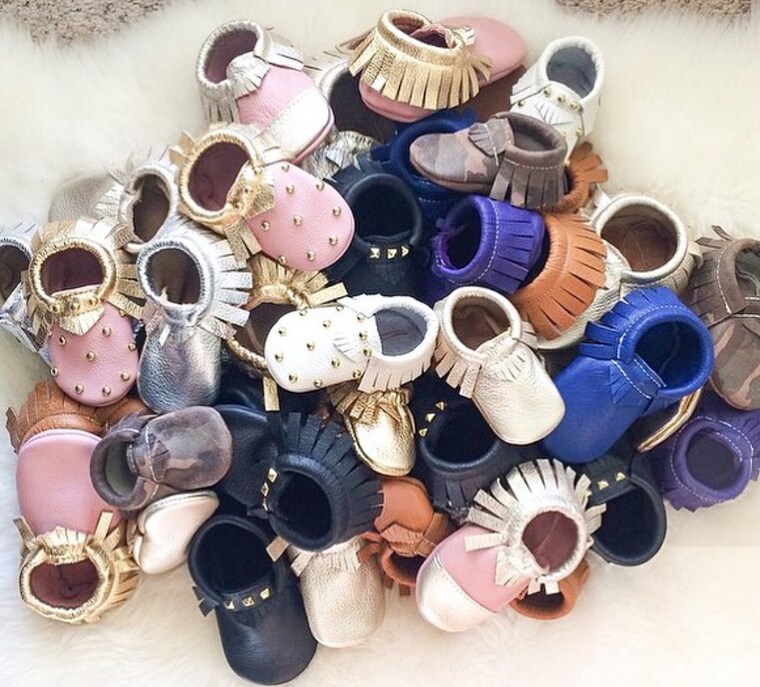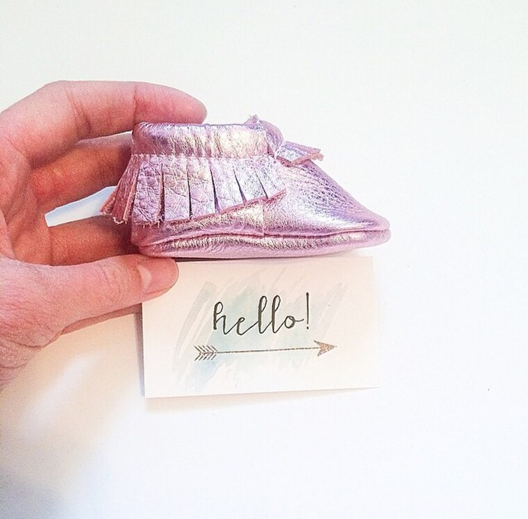 Leather moccasins the size of a business card. Newborn moccs are the cutest! -