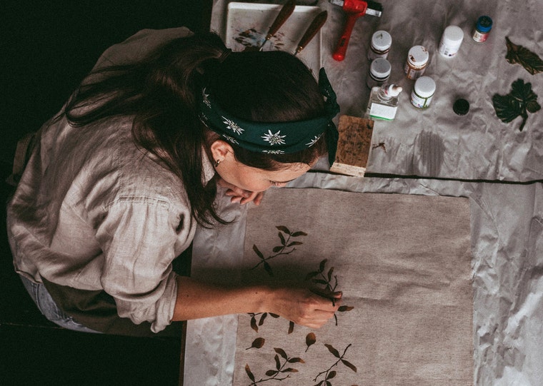 The idea of making bags and working with textile professionally began when I bought my first wooden stamps to make patterns on the fabric. Working with those stamps was really inspiring and little by little I started to curve also from lino my very own designed stamps. From my work you can understand that I'am inspired by the beauty of nordic nature and I hope that the love that I put into my work shows through for you to enjoy.