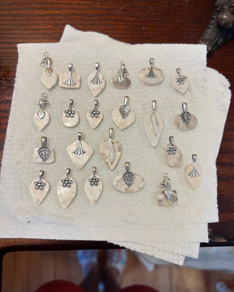 Pendants fresh from the tumbler. -