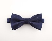 3 out of 5 starsGreat bowtie, easy fastener and pre-tied. We found the picture a bit deceiving as we thought the polka dots were white but they turned out to be silver. A bit of packaging or receipt would have been nice, but the bowtie was just thrown into a shipping bag, loose. Overall though the quality of the bowtie is good.