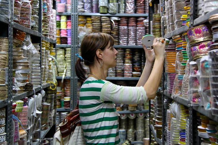 Choosing ribbons and trims in India, my favorite part of our journey! -
