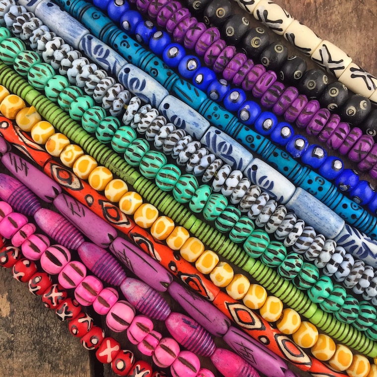 We've got your bone beads at WomanShopsWorld! Handcrafted, selected at the source, in a rainbow of colors. 🌈 -