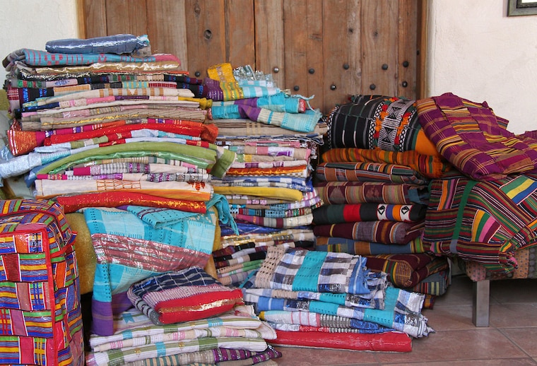 A new heap of vintage African textiles: Aso Oke, Ewe, Kente, Tuareg.