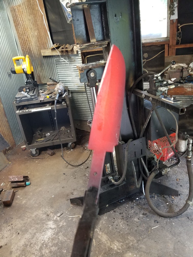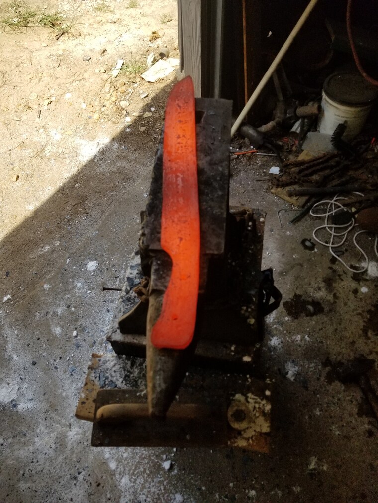 In this photo I'm forging in the tip of this big knife. -