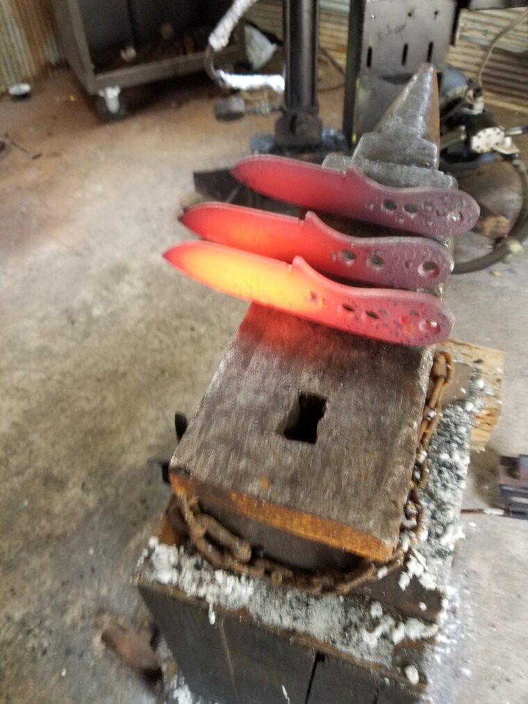 Hago arte en forma de cuchillos únicos con fuego y martillo.