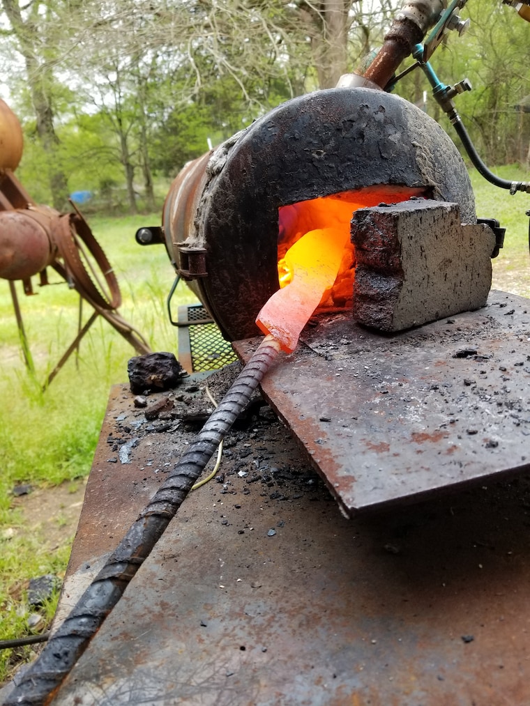 Here I am reheating the blade for more forging to shape. -