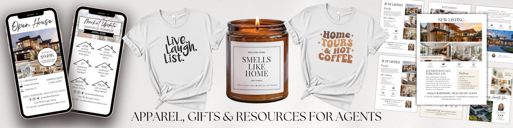 ☆ Customized agent journals, candles, and apparel for real estate agents and their clients and colleagues