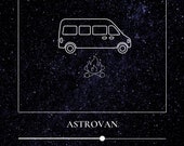 5 out of 5 starsThe design is a visually striking composition that captures the essence of the song Astrovan. The contrast between the dark starry background and the minimal white color of the play screen creates a sense of dynamism and energy, which is reflective of the song's upbeat and lively nature. The starry background sets a dreamy and otherworldly tone, which is further enhanced by the use of a camp like scene represented in the play screen. Overall, the design effectively captures the vibe of the song Astrovan and translates it into a visually appealing and engaging piece of art. Such a design has the ability to seamlessly enhance the overall aesthetic of any space. The versatility of this artwork is endless and I am thoroughly impressed with the quality and creativity of the design.