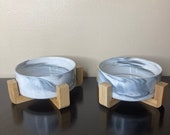 5 van 5 sterrenSize: 5 in. (Diameter), 1.87 in Height I love the design on these food bowls. However, they are not big enough for larger dogs. Even with medium sized dogs, you would have to refill so they get the necessary amount of water for their weight. For example, a 25lb pound dog, will require 3 cups (24 ounces) and an ounce. In the picture, I put a cup of water on the bowl. I don't have any kibble with me as I don't have my puppy yet. But, I put beans as a good visual for kibble. In the pictures I provided, I put 1-1/2 cup for a 21- 35lb dog according to Purina One Smart Blend Adult Dry Food. These food bowls are only meant for cats and dogs that are XS Small to Medium in size (depending on weight).