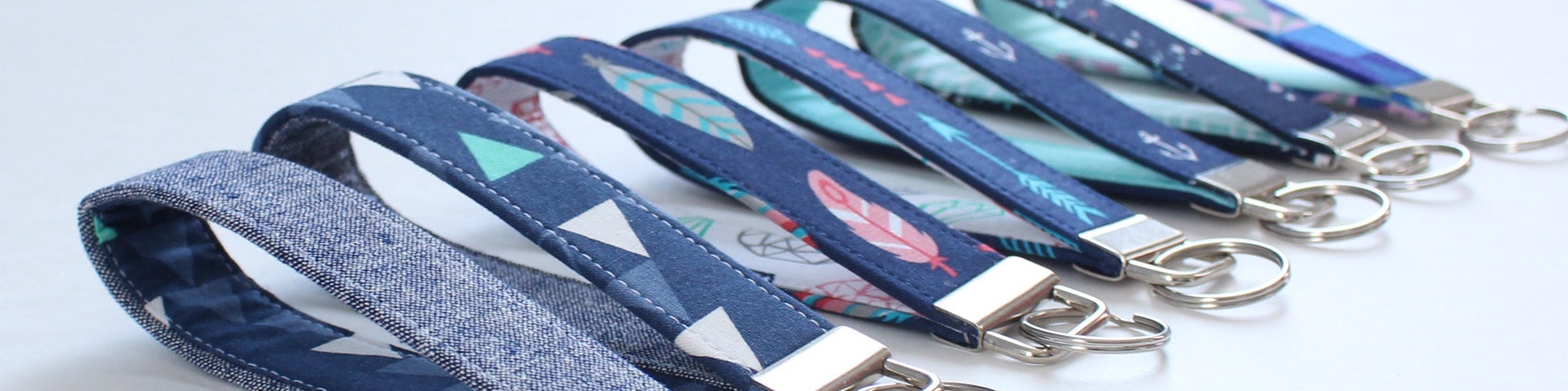 Quality handmade cotton fabric wallets, key fobs, card wallets, and personalized accessories for women.