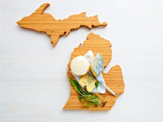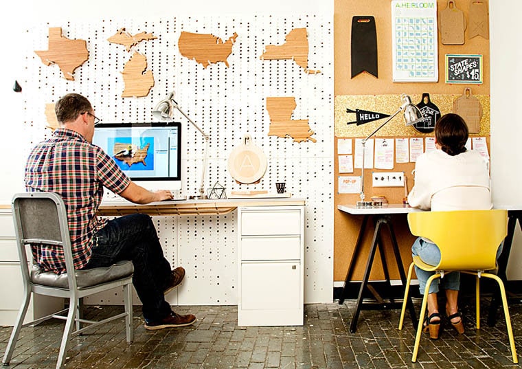 Brooklyn based makers and manufacturers, Amy Stringer-Mowat and Bill Mowat, made their first cutting boards for their 2010 wedding. It is rumored that the groom was actually finishing the boards on the day of the wedding... The two wanted a personalized and sentimental way to display cheese, and came up with state-shaped cutting boards for each of their home states (Michigan and Connecticut), with hearts on their hometowns. Delightfully, other people wanted the boards and they are now made for all fifty states. Each board is made in the USA of bamboo. AHeirloom listed their original state shaped cutting boards on Etsy in May of 2010 and by the end of that year, a business was born.
