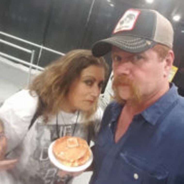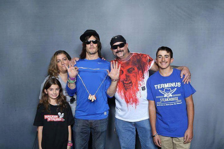 Norman Reedus poses with Daryl's Ear Necklace soap at Walker Stalker NJ October 2015 -