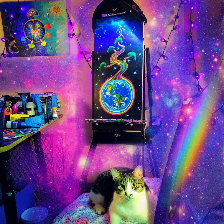 Hi! I am Becca Tindol, a 23 year old mom and student. I started painting mid-2018. The inspiration for my artwork comes from visions I experience during meditation. I hope you enjoy my colorful artwork! Please message me for commission information.