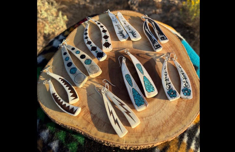 earrings (turquoise inlaid elk antler earrings) at the largest Native American Art market in the world (SWAIA Santa Fe)