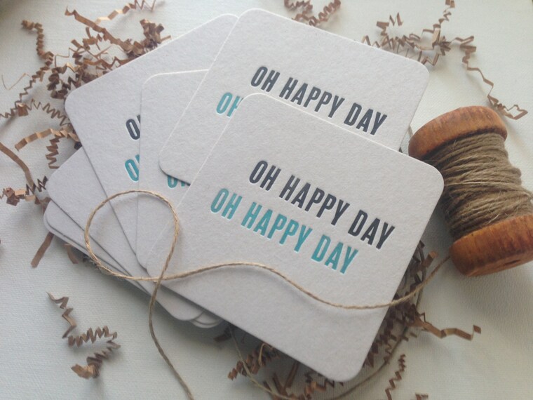 Oh happy day letterpressed coasters. -