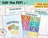 5 out of 5 starsBought this template for my kids to have a little more responsibility in the afternoons to keep them on top of their chores and tasks through the week. They love getting the mom bucks at the end of the week and getting to spend them for real money, stay up after bedtime, etc. I wish that it had a way to change the $ amount but we made it work. Overall the template was easy to make changes to except for the bucks themselves and my kids love getting to turn them in to me to get rewarded for doing their responsibilities along with tracking their behavior at school.