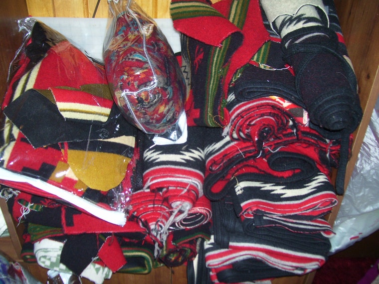These are some of my larger pieces of Pendleton wool - red section. -