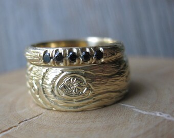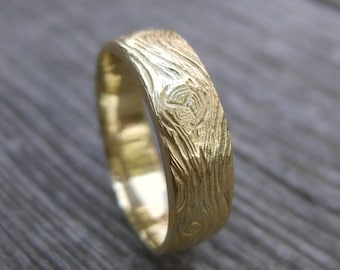 BARNWOOD cedar woodgrain ring faux bois 14kt gold mens wedding band Made to Order