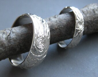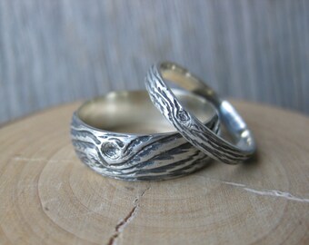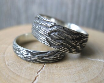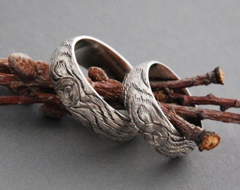 Wedding band set DRIFTWOOD branch twig wood ring woodgrain ring sterling silver Made to Order