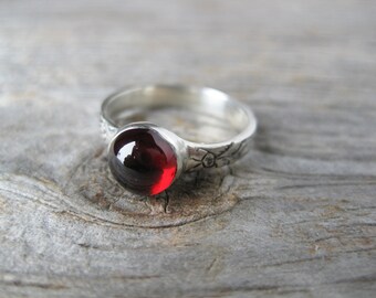 Woodgrain blood red GARNET ring sterling silver ring ooak size 6