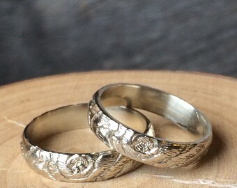 BARNWOOD cedar woodgrain wedding ring set faux bois 14kt gold mens womens wedding band Made to Order