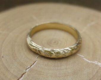 Gold Twig womens band YOUR CHOICE white rose yellow gold woodgrain 14kt 3mm ring Made to Order