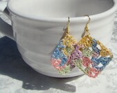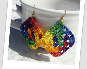 Granny square crocheted earrings, rainbow earrings, handmade earrings, psychedelic earrings, boho chic earrings, bohemian earrings