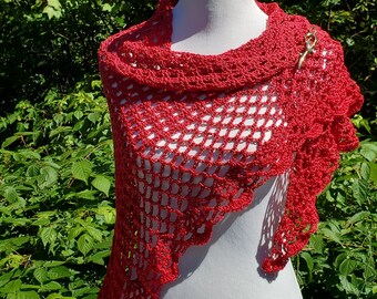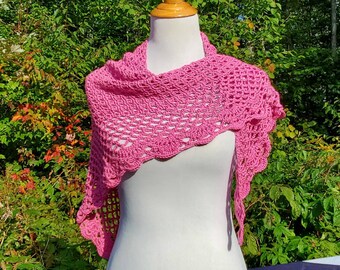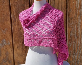 Pink passion wedding shawl, crochet shawl, openwork lace shawl, Victorian lace shawl, bridesmaids wrap, beach summer wedding accessory