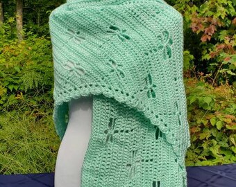 Dragonfly crochet shawl, Mothersday shawl, bridal party accessory, Outlander inspired shawl, wedding attire, bridesmaids wrap, Ready to Ship