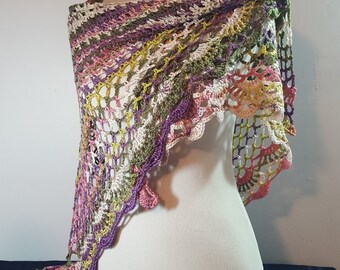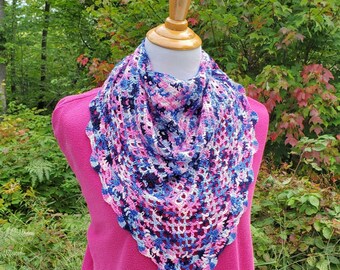 Pink and blue lace shawlette, lightweight openwork lace shawl, crochet lace shawl, bridal fashion, bridal fashion, bridesmaids wrap