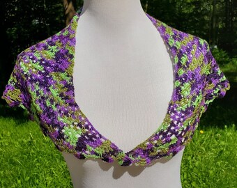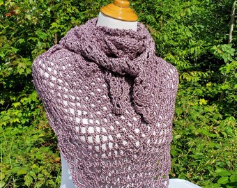 Purple lace shawlette, lightweight openwork lace shawl, crochet lace shawl, bridal fashion, OOAK fashion, bridal fashion, bridesmaids wrap