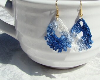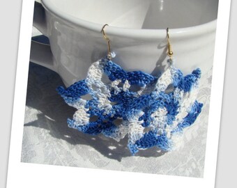 crochet earrings, blue earrings, handmade star earrings, cool blue earrings, psychedelic earrings, boho chic earrings, bohemian earrings