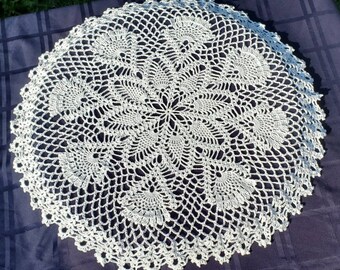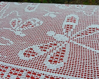 Tulip bedspread, handmade ivory twinsize bedspread, bedroom decor, duvet throw, crocheted coverlet, crochet tablecloth, dining room decor