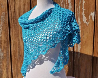 Peacock Blue wedding shawl, Crochet shawl, openwork lace shawl, Victorian lace shawl, Bridesmaids wrap, beach summer wedding accessory