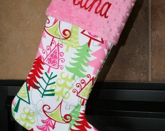 Funky and Festive Yule Trees Christmas Stocking, Personalized Christmas Stocking, Girls Christmas Stocking, Baby Christmas Stocking