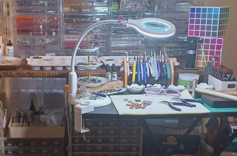 Since then, I’ve taken classes in everything from cold connections to lampwork to precious metal clay, but my heart always comes back to assemblage and—let’s be honest—anything beady and unique. This hobby is fun!