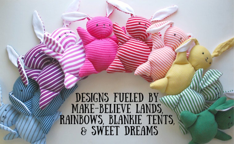I want kiddos to experience the magic of rainbows, make-believe, and sweet dreams. I want to be kind to the earth and use what already exists. I want big people to know that childhood doesn’t have to end just because they’ve grown up. My toys, plushies and other wee confections are designed with whimsy, vibrant colors and happy details, then handcrafted from secondhand stuff and eco-friendly fabrics in order to make all of these dreams come true.