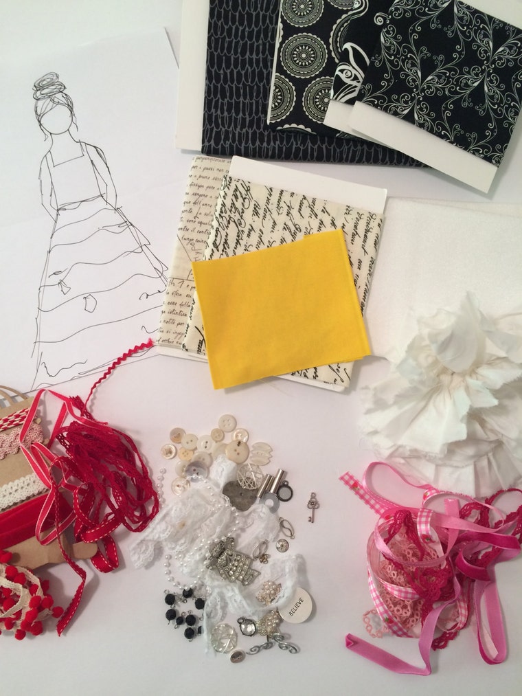 Selecting fabrics and embellishment before I start assembling an art quilt -