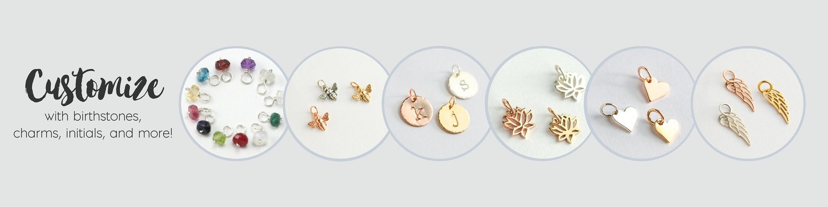 Many items are customization with initials, birthstones, or chain length. Use the drop-down boxes and message to seller section during checkout for the rest of the information. Any lack of information can cause a delay in your order.