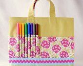 Artotes are just the thing for traveling, restaurants or anywhere else you need to keep your little ones occupied. They hold 8 crayons or markers and a small or regular-sized coloring book or sketchpad. They are also great for carrying small toys, books and treasures. Perfect for gift giving!