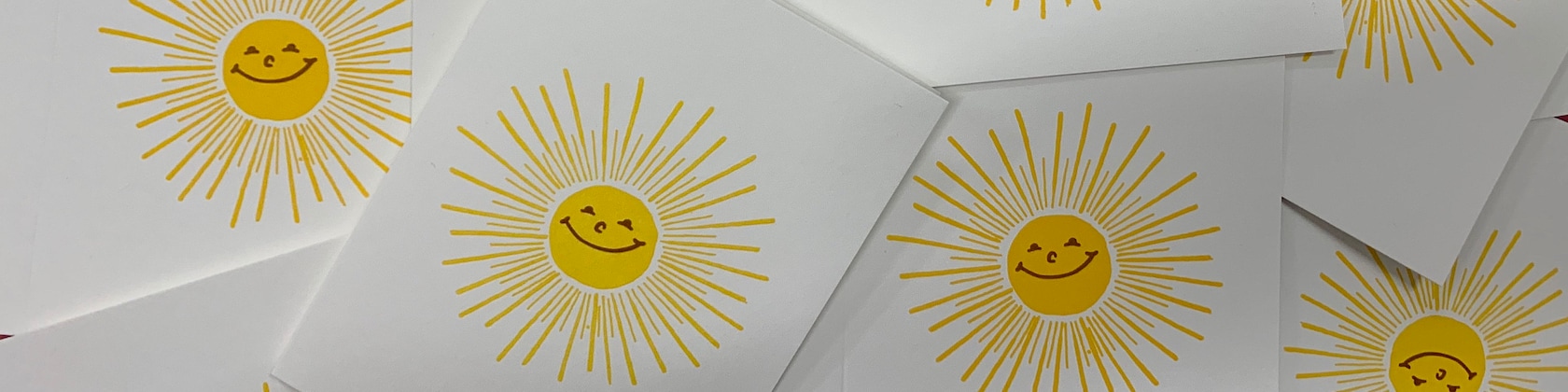 Our cards are all printed the old fashioned way- one color at a time on antique presses. -