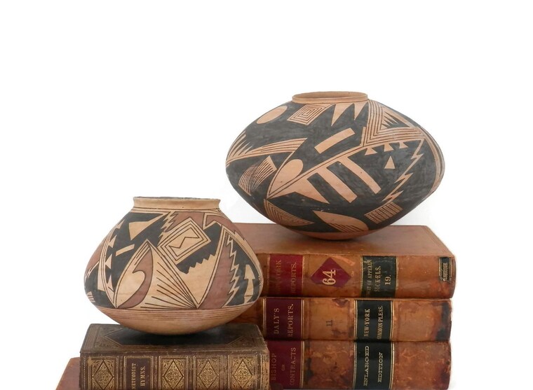 Two early pots by Taurina Baca: one of Mexico's finest potters.