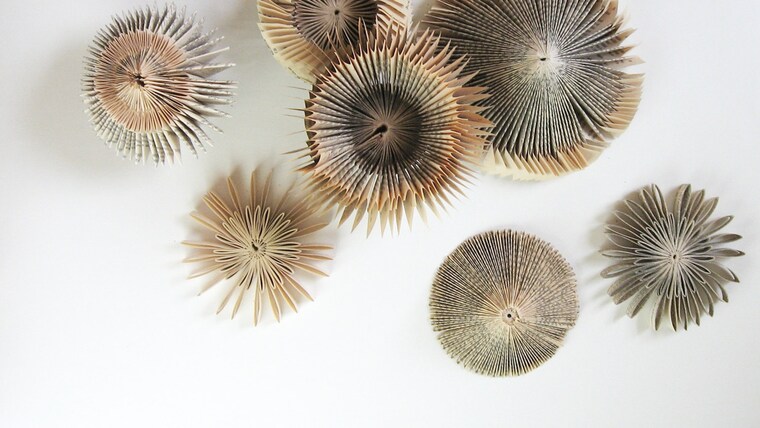 Ich habe mich schon immer künstlerisch engagiert und mag Bücher auch als künstlerisches Material. Ich experimentiere ständig mit Origami-Techniken, um Formen zu finden, indem ich ganze Bücher oder einzelne Seiten falte. Ich finde es lustig, eine Installation aus Papierzahnrädern zu gestalten, die ich mit Shakespeares Stücken und Harlequin-Liebesromanen gestaltet habe. Die Handlungsstränge ähneln sich sehr: Romantik, Tragödie, Liebe und/oder Tod, dann Vorhang auf!