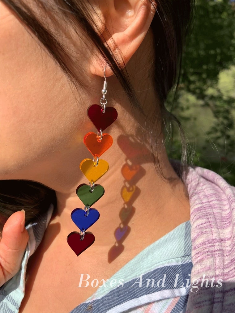 My best seller. Rainbow Heart Earrings (short version)! -